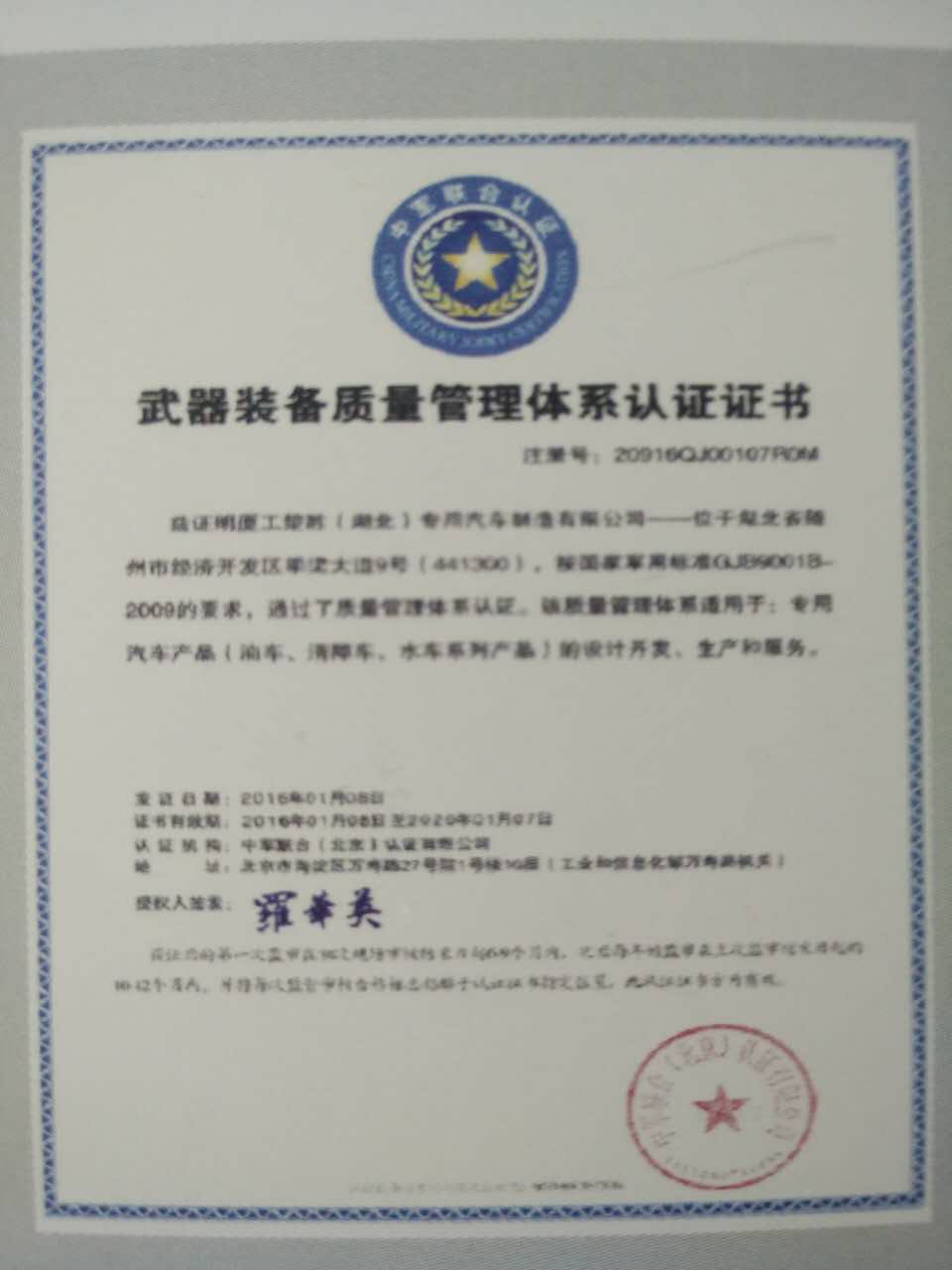 前段時間公司又迎來了驕傲的成績獲得向軍方出售產(chǎn)品的權(quán)利,在解放軍后勤總部掛號的企業(yè) 《武器裝備質(zhì)量管理體系認證證書>